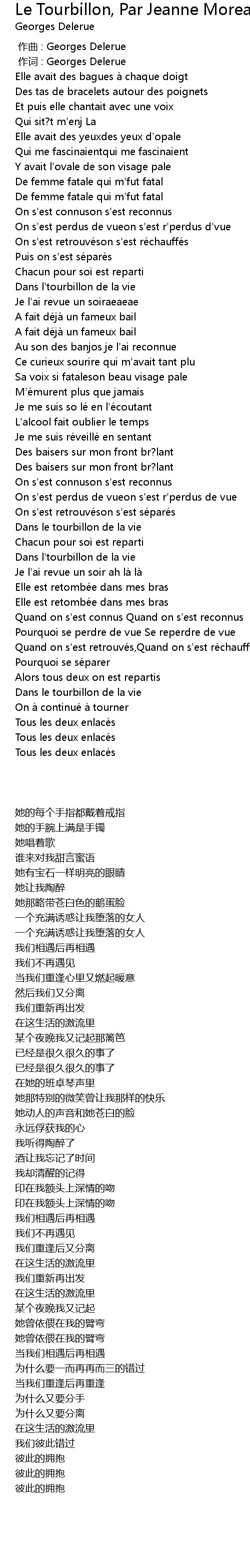 | Song | Le Tourbillon, Par Jeanne Moreau |