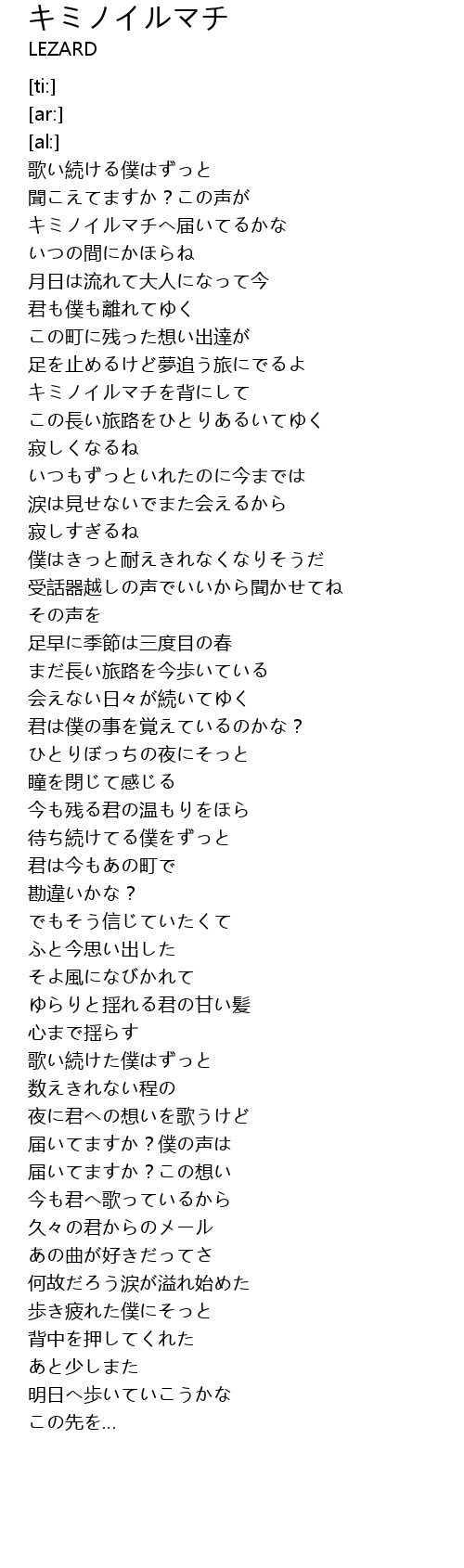 | [00:07.55] | キミノイルマチへ届いてるかな |