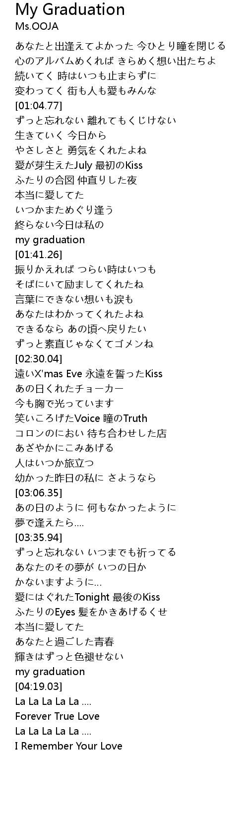 | [03:41.76] | ずっと忘れない いつまでも祈ってる |