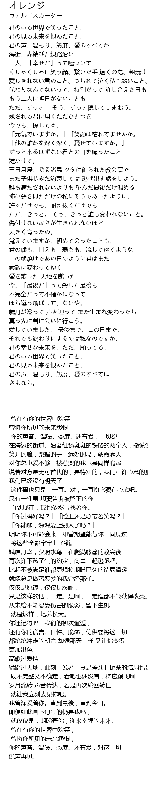 | [00:43.29] | くしゃくしゃに笑う顔、繋いだ手 遠くの島、朝焼け |