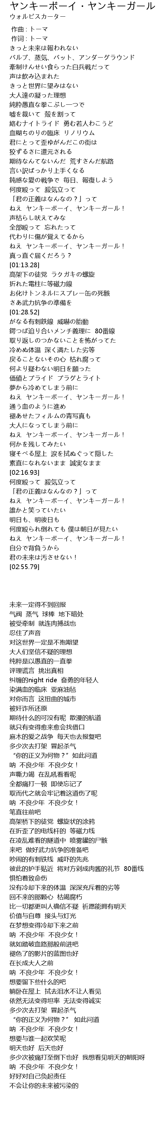 | [02:39.52] | ねえ ヤンキーボーイ、ヤンキーガール! |