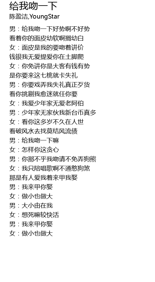 | 女:我只陪唱歌啊不通憨狗煞 | |
