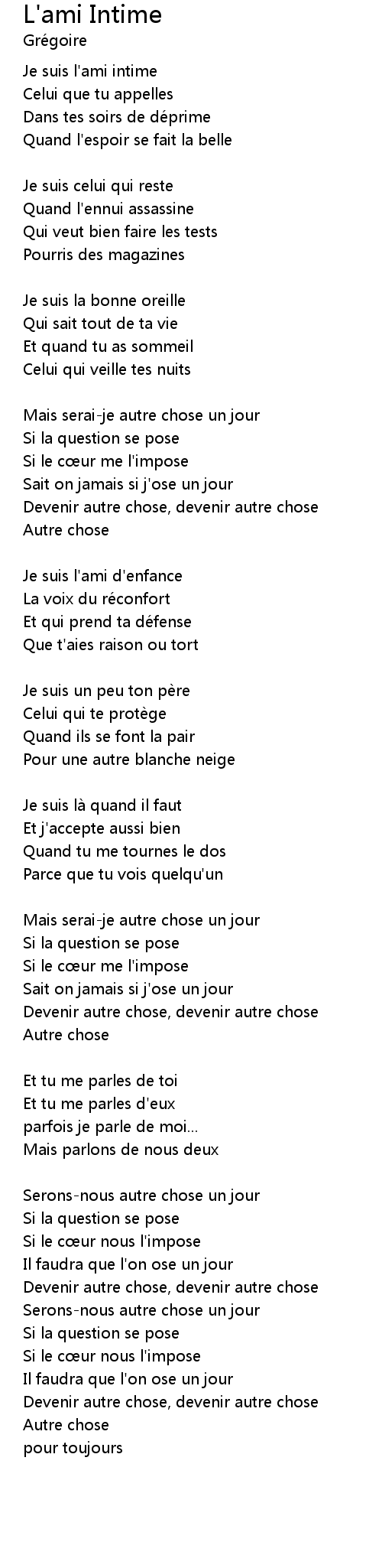 | Je suis l' ami intime | |