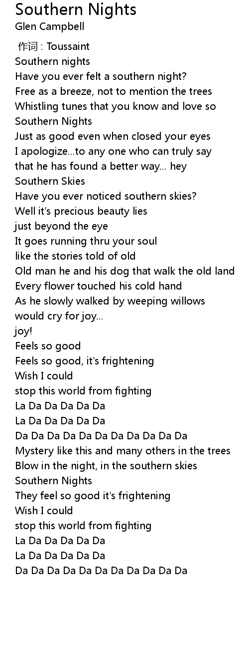 | [00:10.29] | Southern nights |