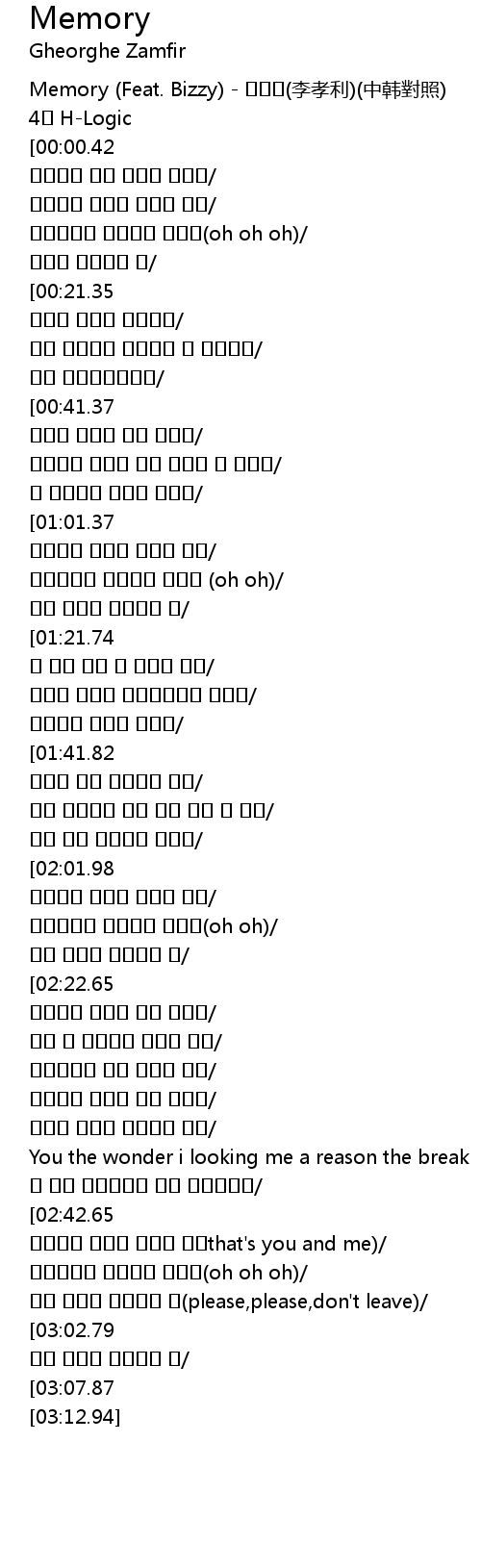 | [00:00.00] | Memory Feat. Bizzy lǐ xiào lì zhōng hán duì zhào |