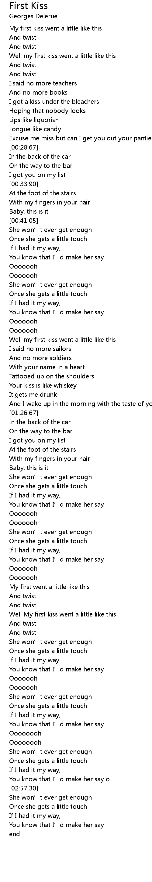 | [02:15.76] | Well My first kiss went a little like this |
