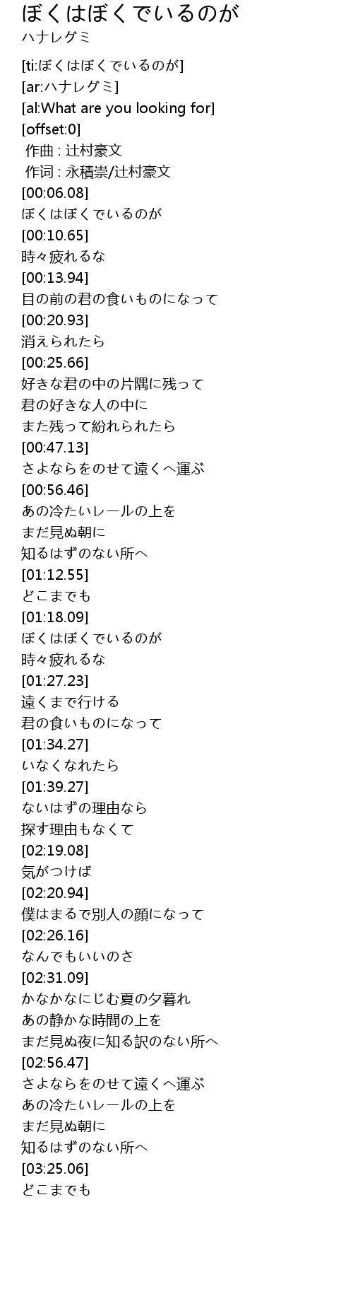 | [00:49.81] | さよならをのせて遠くへ運ぶ |