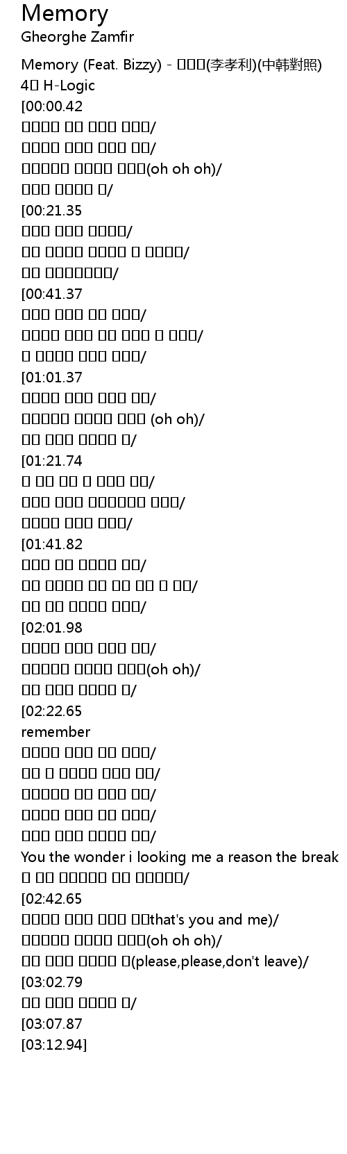 | [00:00.00] | Memory Feat. Bizzy lǐ xiào lì zhōng hán duì zhào |