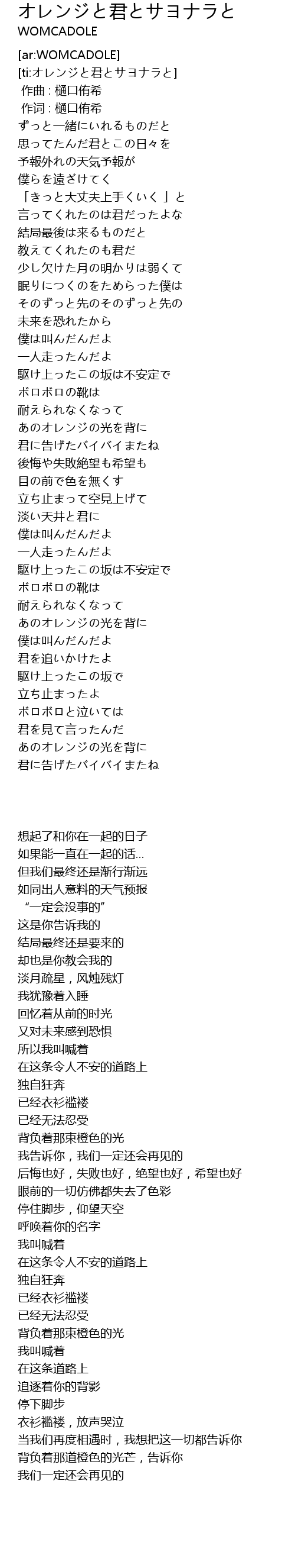 | [ti:オレンジと君とサヨナラと] | |