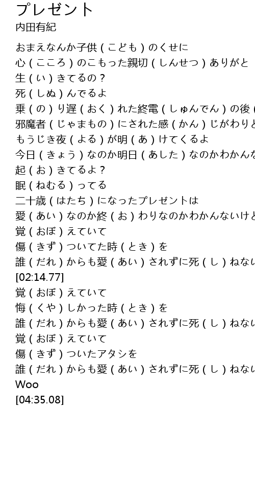 | [03:41.67] | 誰(だれ)からも愛(あい)されずに死(し)ねない Woo Woo |