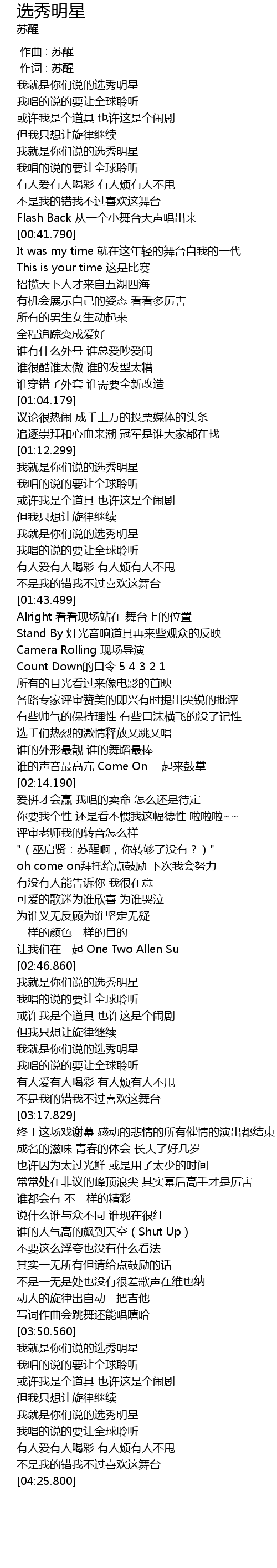 | [04:08.840] | 我就是你们说的选秀明星 |