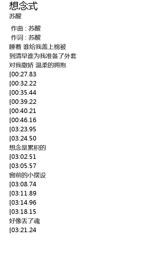 | [03:49.48][03:24.50][02:59.24][02:08.53][01:43.31][00:51.72] | 想念是随意的 想念是累积的 |