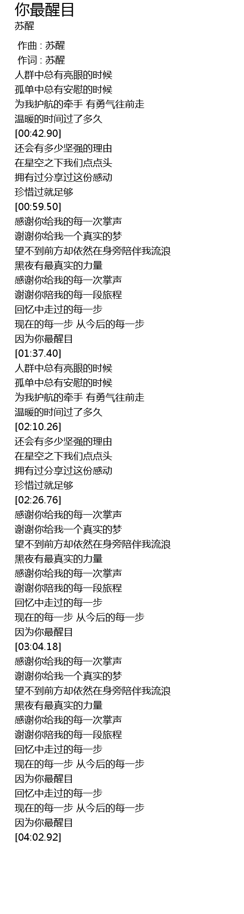 | [03:00.53] | 因为你最醒目 |