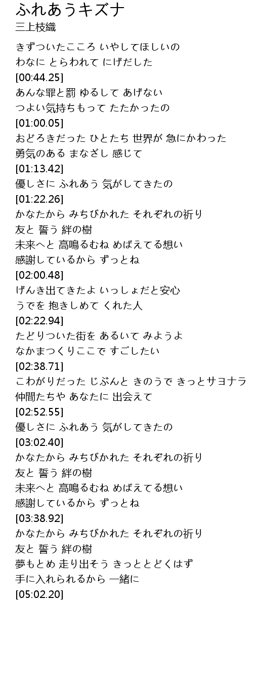 | [02:09.41] | げんき出てきたよ いっしょだと安心 |