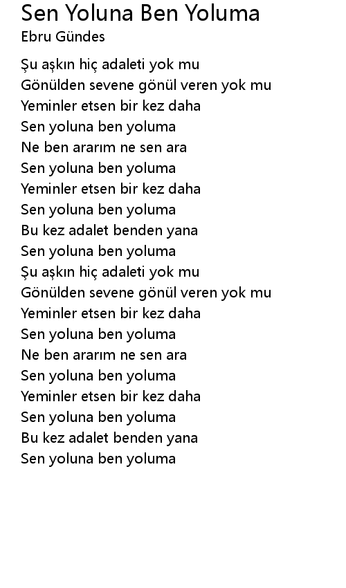 | Song | Sen Yoluna Ben Yoluma |