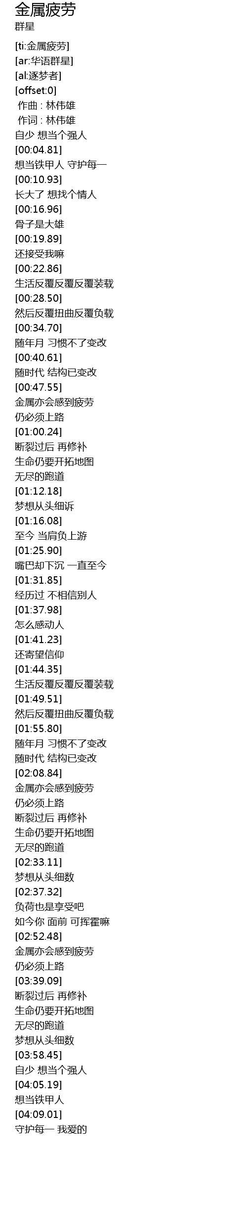| [03:31.55] | jīn shǔ yì huì gǎn dào pí láo |