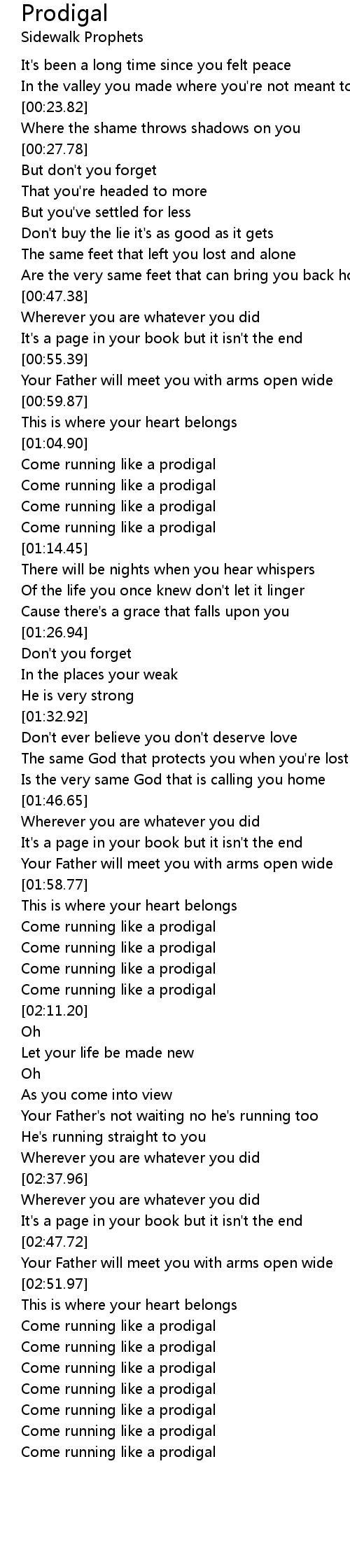 Come running like a prodigal |