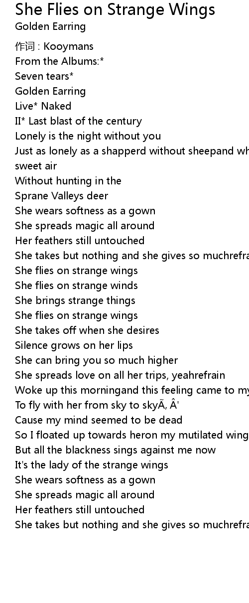 | She flies on strange wings | |