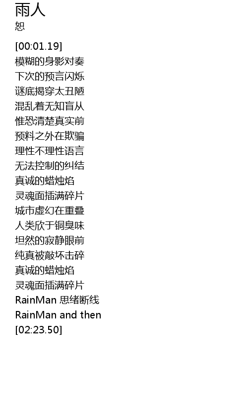 | [01:57.06] | RainMan sī xù duàn xiàn |