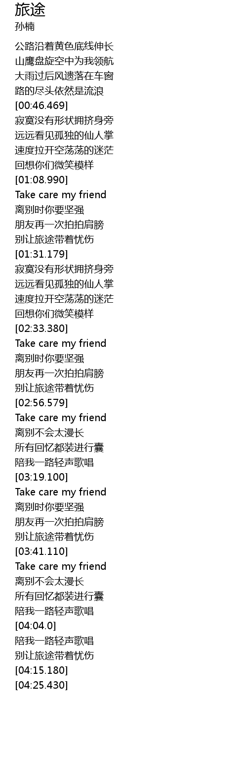 | [00:41.149] | lù de jìn tóu yī rán shì liú làng |