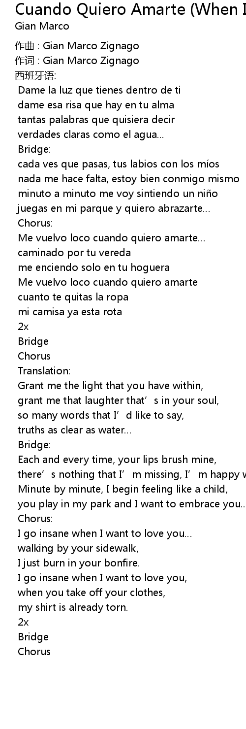 | Song | Cuando Quiero Amarte (When I Want to Love You) |