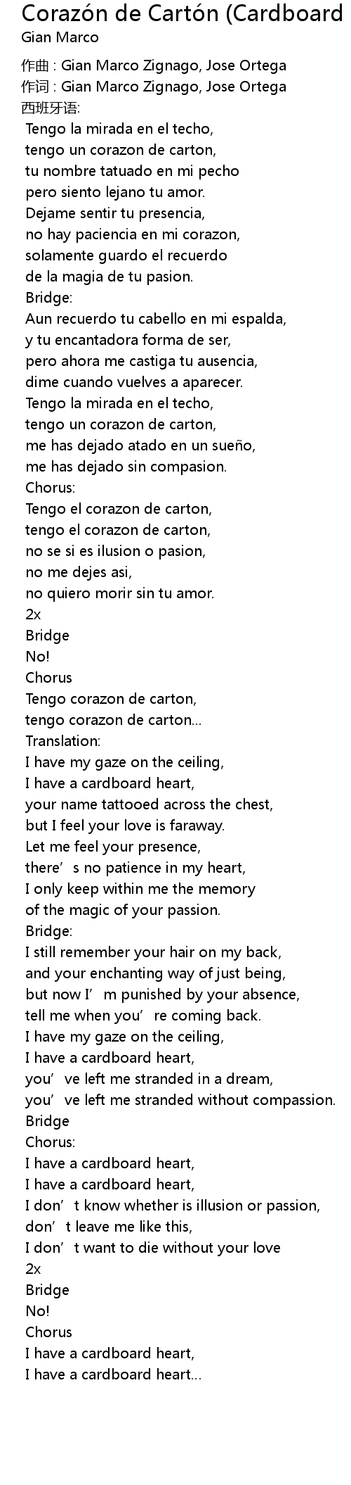 | Song | Corazón de Cartón (Cardboard Heart) |