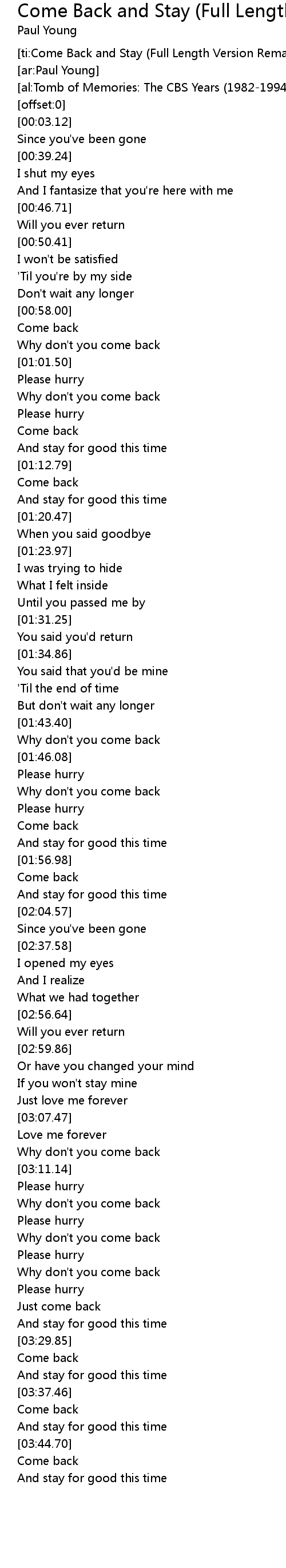[ti:Come Back and Stay (Full Length Version Remastered)] |