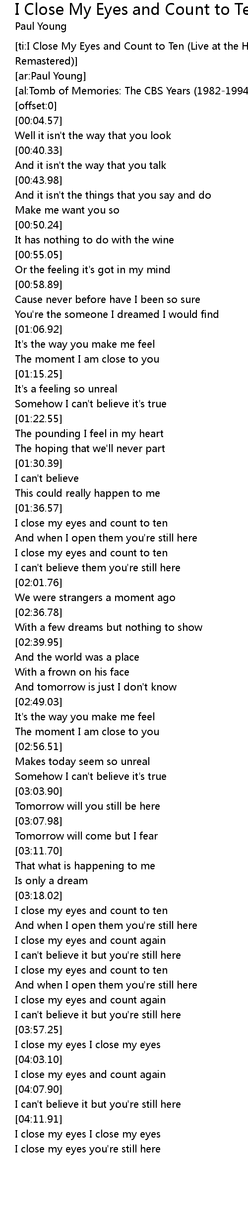 [ti:I Close My Eyes and Count to Ten (Live at the Hammersmith Odeon, 1983 Remastered)] |