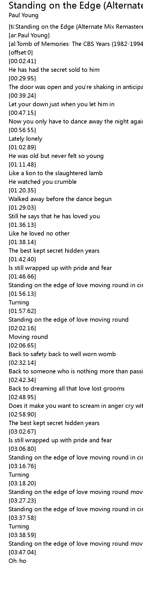 [ti:Standing on the Edge (Alternate Mix Remastered)] |