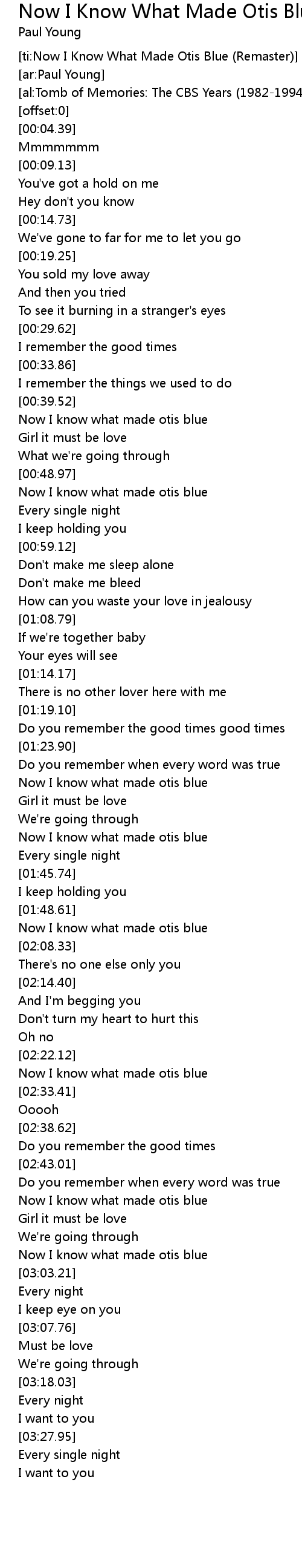 [ti:Now I Know What Made Otis Blue (Remaster)]