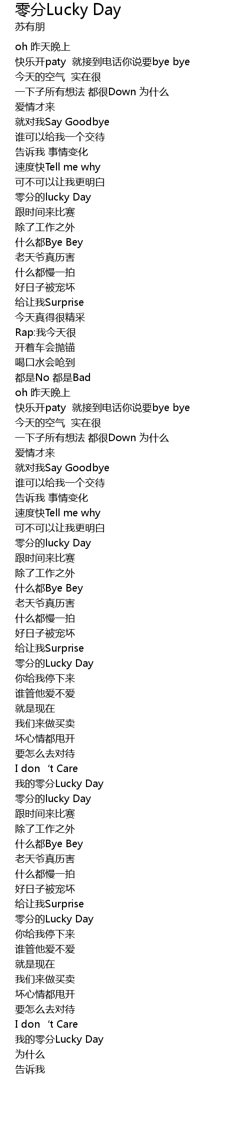 | [01:43.66] | líng fēn de lucky Day |