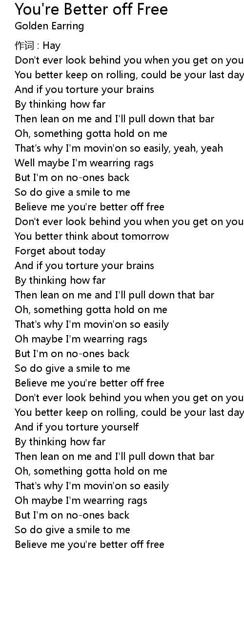 | Believe me you' re better off free | |