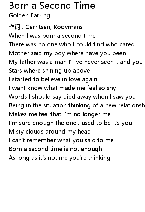 | Song | Born a Second Time |