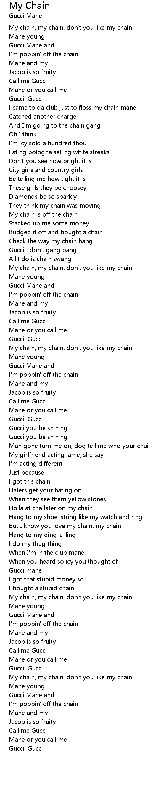 But I know you love my chain, my chain