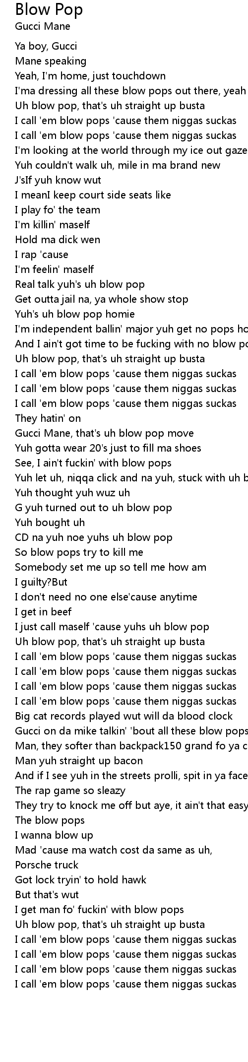 Yuh let uh, niqqa click and na yuh, stuck with uh blow pop |