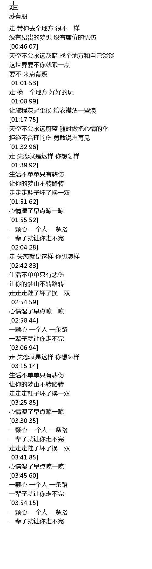 | [03:38.80] | 走走走鞋子坏了换一双 |
