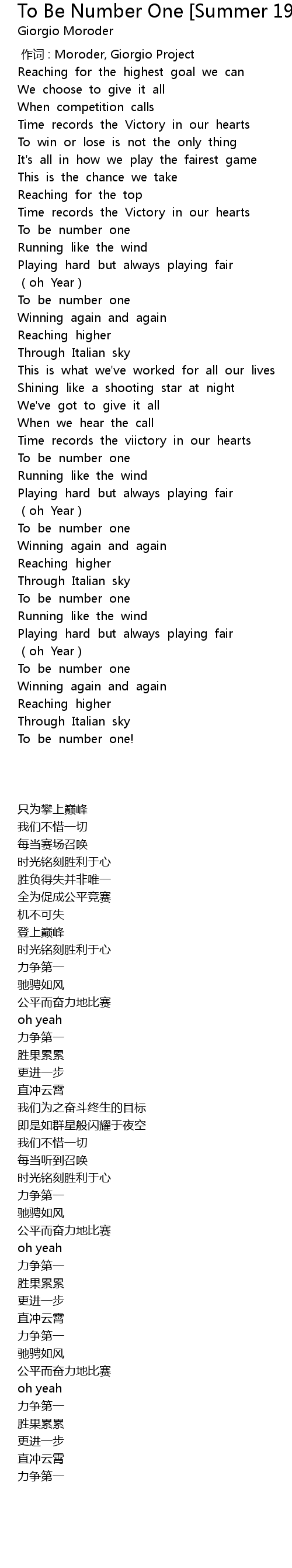 | [00:00.00] | 作词 : Moroder, Giorgio Project |