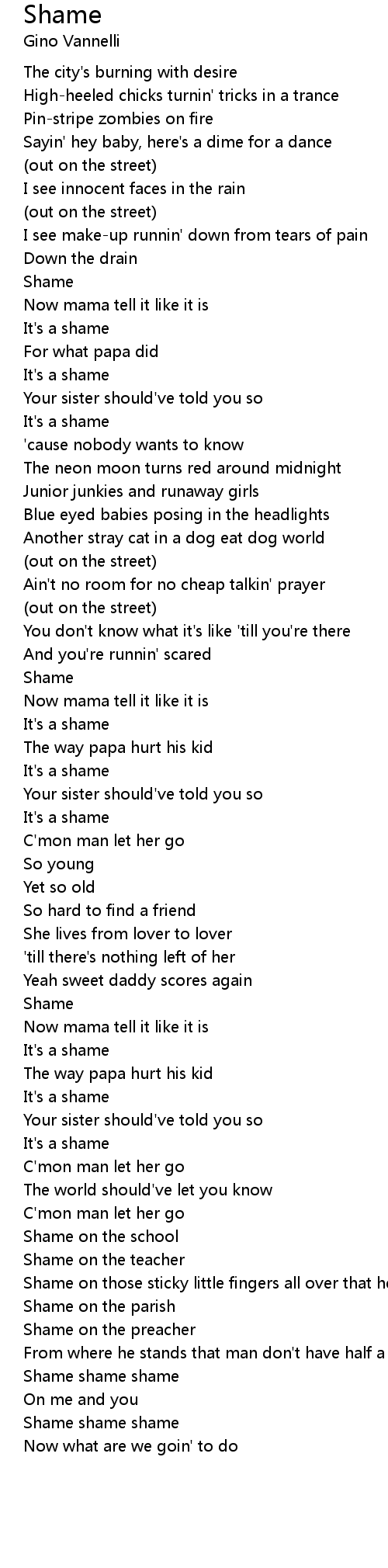 Shame Lyrics
