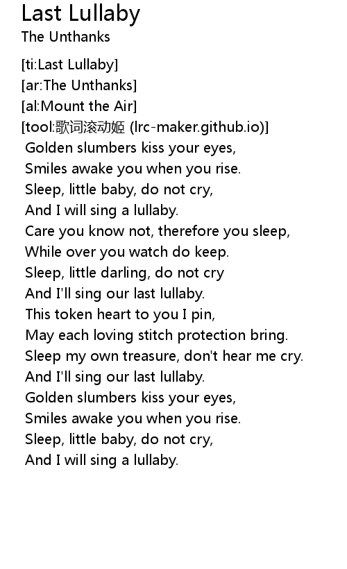 | [01:44.689] | Sleep, little baby, do not cry, |