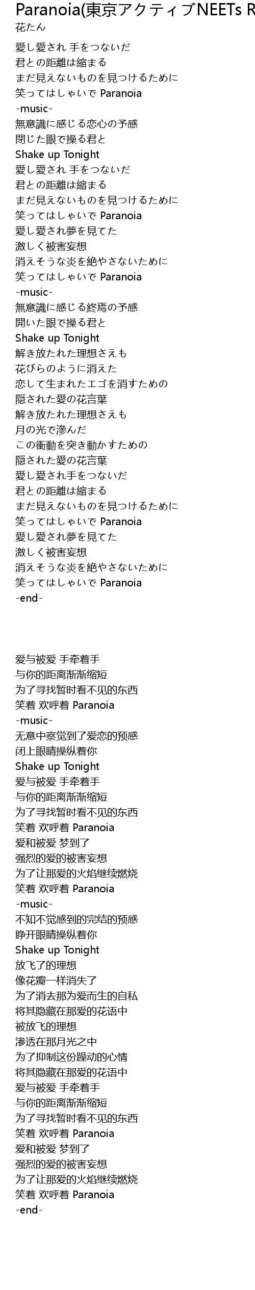 | [01:41.67] | 笑ってはしゃいで Paranoia |