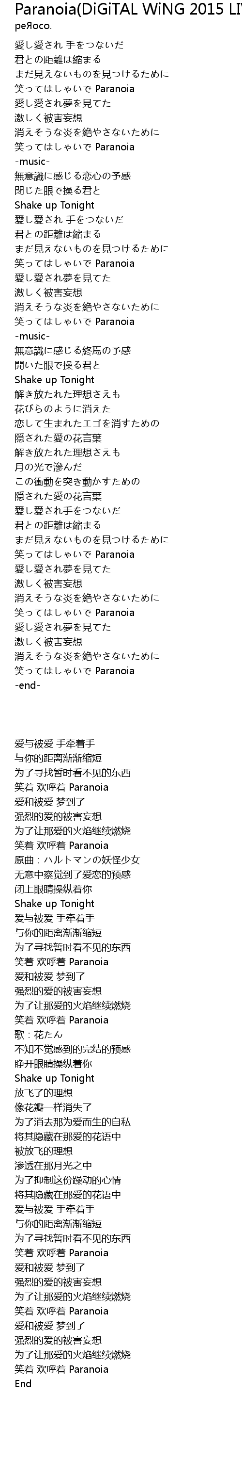 | [00:35.15] | 笑ってはしゃいで Paranoia |