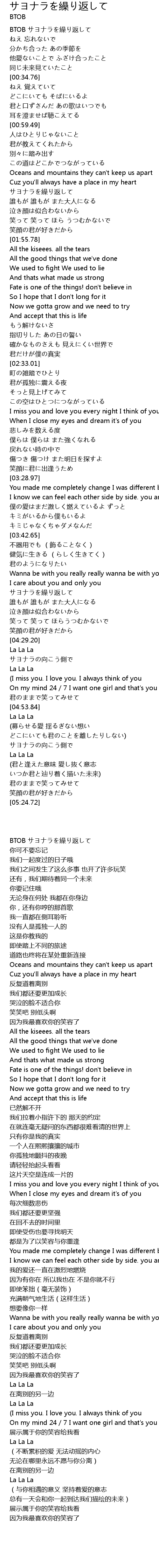 | [00:01.22] | BTOB サヨナラを繰り返して |