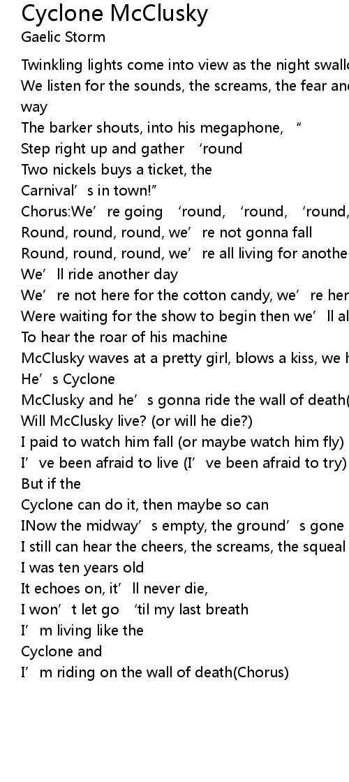 | McClusky and he’s gonna ride the wall of death(Chorus) | |