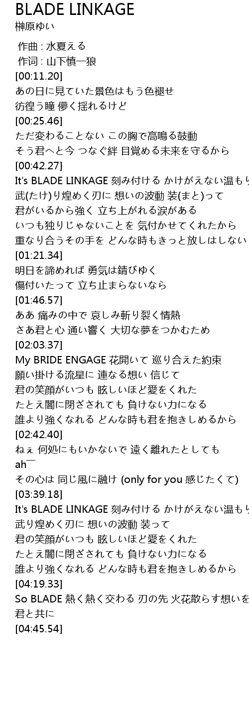 | [03:42.65] | It's BLADE LINKAGE 刻み付ける かけがえない温もり |