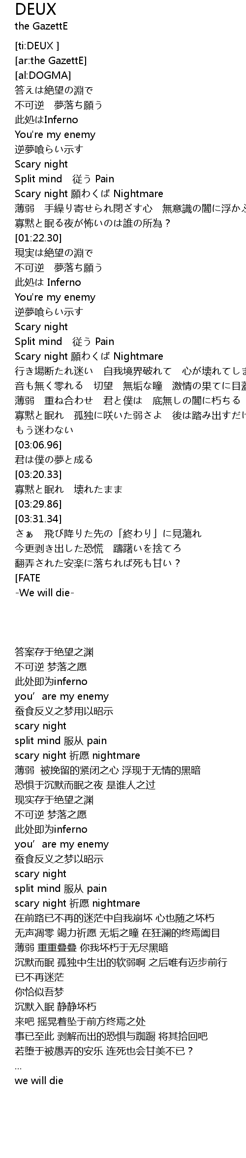 | [03:22.86] | 寡黙と眠れ 壊れたまま |