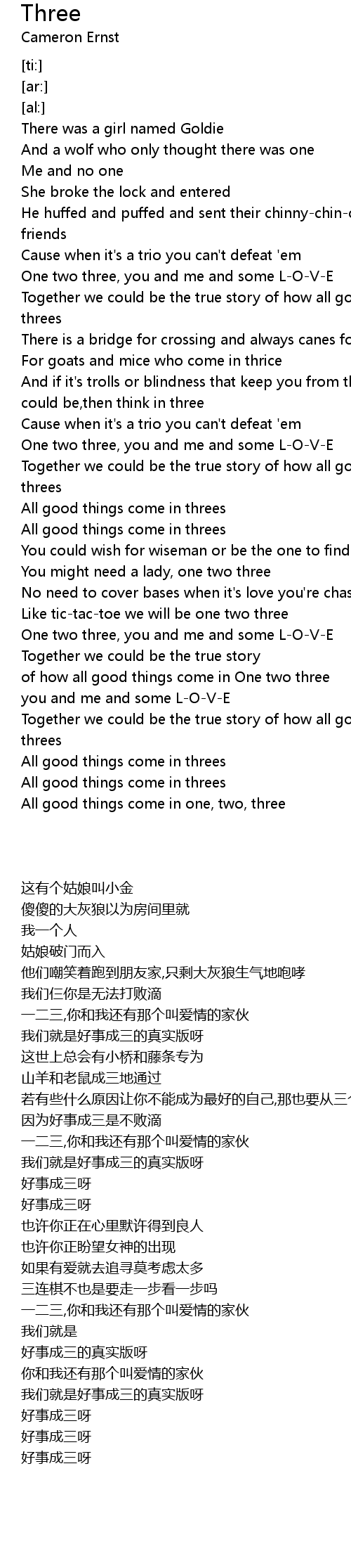And if it's trolls or blindness that keep you from the finest one you could be,then think in three |