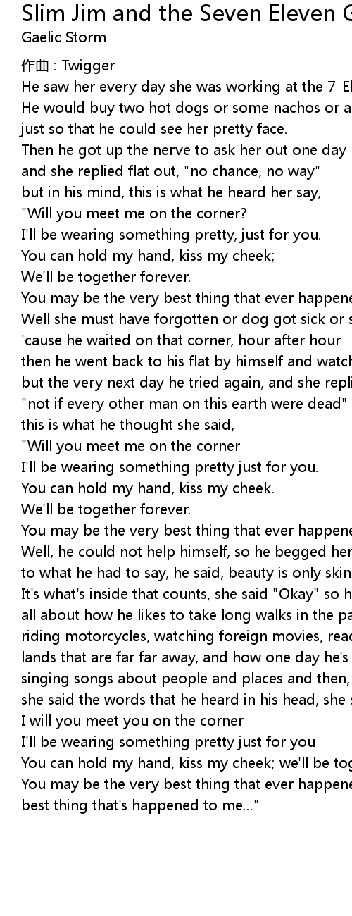 | Song | Slim Jim and the Seven Eleven Girl |