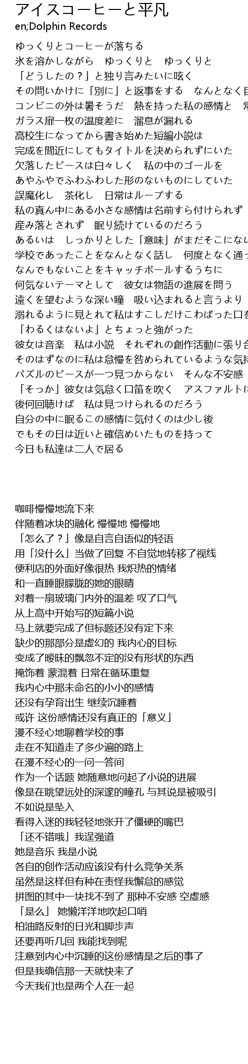 | [00:24:300] | コンビニの外は暑そうだ 熱を持った私の感情と 常に眠たそうな彼女の瞳 |