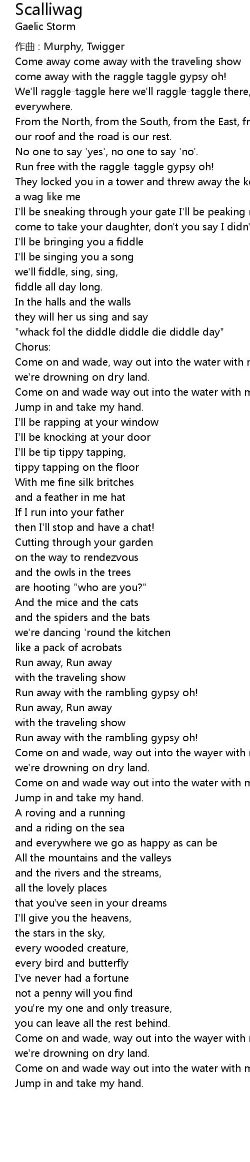 | We'll raggle-taggle here we'll raggle-taggle there, raggle up and down taggle everywhere. | |