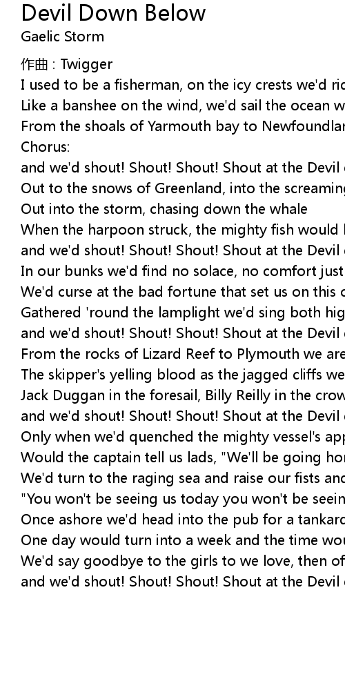| and we'd shout! Shout! Shout! Shout at the Devil down below |